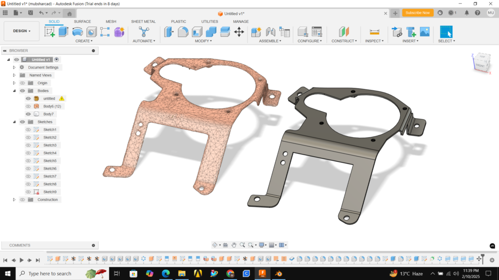 Porfolio Explore real-world mechanical design projects delivered with precision, innovation, and manufacturing-ready engineering solutions. CAD Modeling & Drafting CAD Modeling & Drafting Precise 3D CAD models and manufacturing-ready technical drawings. Reverse Engineering Reverse Engineering Convert scanned meshes or parts into accurate CAD. FEA & CFD FEA & CFD Engineering simulations analyzing strength, thermal behavior, and fluid. Sheet Metal Sheet Metal Sheet metal parts with flat patterns, bends, manufacturing.
